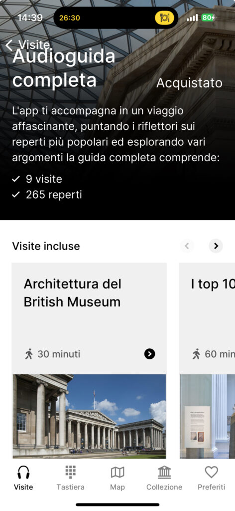 L’app del British Museum si scarica invece dagli store e permette di ricevere informazioni solo sulle opere mappate nella guida, che sono una minima parte (ma le più rilevanti) fra quelle presenti nella enorme collezione