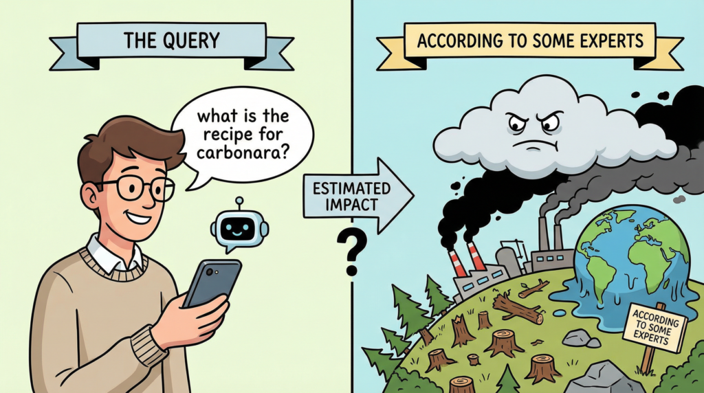 Il primo: il catastrofismo energetico. L’ennesimo paragone tra l’impatto ambientale di una domanda a ChatGPT e chissà quante deforestazioni. Il livello del discorso era questo: chiedere la ricetta della carbonara a un’AI equivale a un danno climatico misurabile.