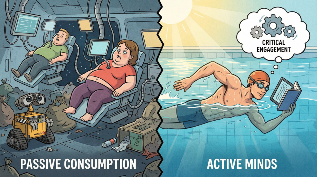 L’altra grande accusa, quella che mi fa venire l’orticaria, è questa: “L’AI ci renderà mentalmente pigri.” Smetteremo di pensare, prenderemo per buone le risposte delle macchine, il nostro cervello si atrofizzerà. Ci trasformeremo tutti negli umani di Wall-E, seduti sulle sedie volanti, grassi e passivi.